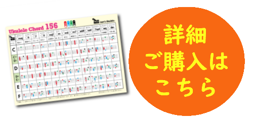 この段階で必要になるコードをまとめたコード表がウクレレ道場オリジナル「ウクレレコード156」です。完全に覚えるのはまだ難しいかもしれませんが、このコード表を手元に置きながら練習すると良いですよ。