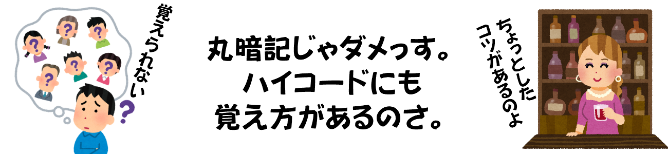 この法則(パターン)がわかれば多くのハイコードを使えるようになってきます。