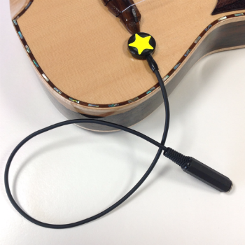 そんな方にお薦めするのが貼り付け式ピックアップ。ウクレレにぺたっと貼るだけの簡単セッティング。あとはアンプにつないだり会場のPAさんにお願いしてつないでもらうだけです。