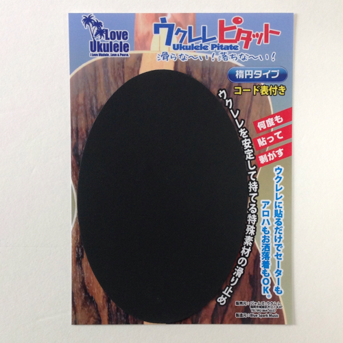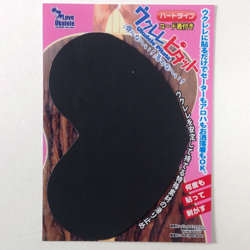 ウクレレの滑り止め「ウクレレ・ピタット」でございます。特殊なゴムでウクレレの裏側に貼って使用します。どんな素材の洋服でもこのピタットがあるとあら便利!ウクレレが安定して持てるじゃーあーりませんか。着脱できるので演奏するときにはウクレレの裏面に貼ってください。使わない時はなるべく外してくださいね。ヴィンテージのウクレレは塗装が弱くなってることがあるのでご注意を。