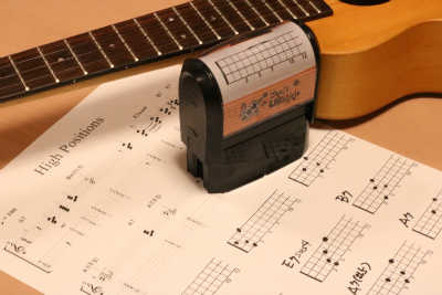 12フレットまでありますから中~上級者にとって使いやすく便利ですが、初心者でも基本コードのポジションをメモするために使用することもできます。スタンプサイズはSとLの2種類あります。楽譜に直接スタンプしたい方は印面小さめのSサイズ、老眼で最近文字が見えにくいという方は印面がやや大きいLサイズをどうぞ。