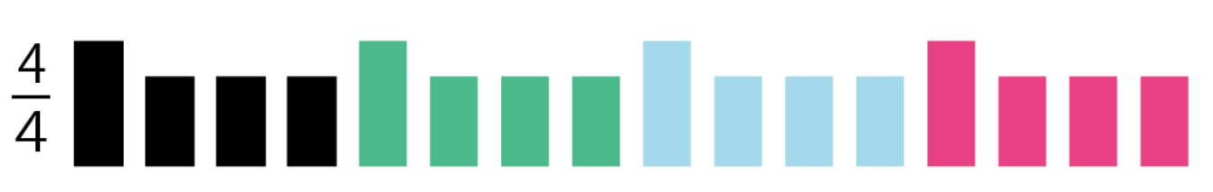 基本は4で出来ている曲が多いので、まずは音楽を聴くときにどこが1なのかを見つける聴き方をしてみることをお勧めします。音楽を聴きながら1・2・3・4と数える訓練をしましょう。リズム練習を行う上ではこれが出来ることが最低条件です。
