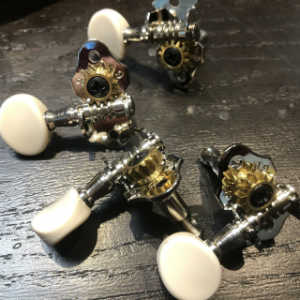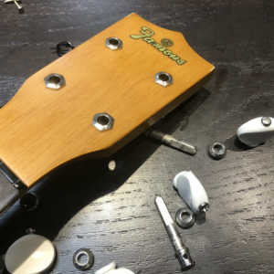 これがギアペグです。GROVERのペグに交換します。ペグの交換によって安定したチューニングができるようになります。